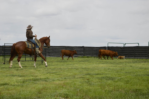 Bei dem Unterfangen muss man die ganze Zeit die Augen offen halten, denn während man oft relativ entspannt hinter der Herde her reiten kann, gibt es immer wieder Momente, wo eine Kuh, ein Kalb oder eine ganze Gruppe ausbricht und man urplötzlich im gestreckten Galopp über die Weide jagen muss, um die wieder einzufangen. Ich bin von zuhause ja nun eher den gepflegten Sandplatz gewöhnt, was sich mit den unebenen, teilweise mit dichten Büschen bewachsenen und mit Löchern zu Erdhörnchen-Bauten übersäten Weiden so gar nicht vergleichen lässt. Da kann man sich eigentlich nur noch auf sein Pferd verlassen und darauf hoffen, dass es seine Beine schnell genug sortiert bekommt. Zum Glück sind Lauras Pferde genau dafür trainiert und wissen genau, was sie zu tun haben.