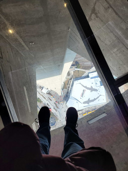 Am 27. März habe ich dann einen Tagesausflug nach Toronto gemacht. Toronto ist die größte Stadt Kanadas mit knapp 3 Millionen Einwohnern, wobei in der Gegend rund um die Stadt über 6 Millionen Menschen leben, fast die Hälfte aller Menschen, die in der ganzen Provinz Ontario wohnen. Die Hauptattraktion in Toronto ist der CN Tower, der Fernsehturm. Hier kann man auf 346 Meter hochfahren und von einer Aussichtsplattform aus die Aussicht über die Stadt genießen. Ich hatte bei meinem Besuch Glück und hatte super Wetter, sodass ich auch richtig weit gucken konnte.